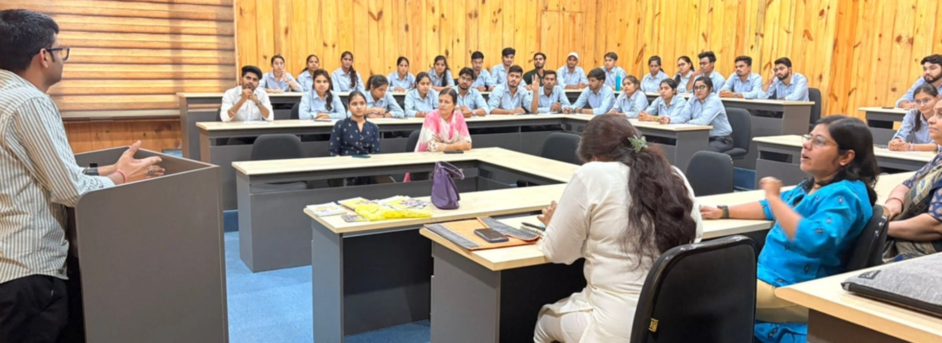 Suresh Gyan Vihar University’s School of Education took a significant step towards inclusive education by organizing a collaborative activity under the ULLAS: Nav Bharat Saksharta Karyakram. The session, held on November 11, 2024, engaged teacher trainees in a mission to contribute to adult literacy and lifelong learning.